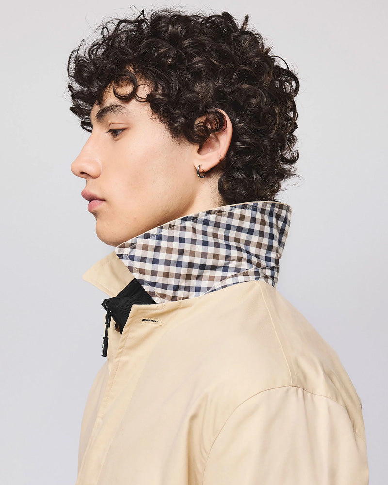 Weekend Offender Whitehouse Mac Jacket w odcieniu beżowym to elegancki, a zarazem praktyczny płaszcz typu mac, który łączy klasyczną formę z nowoczesnymi detalami. Jasny, neutralny kolor podkreśla styl casual, jednocześnie zachowując codzienną wygodę.